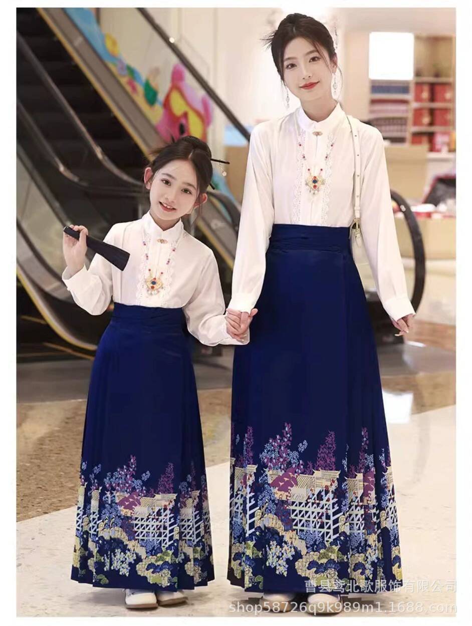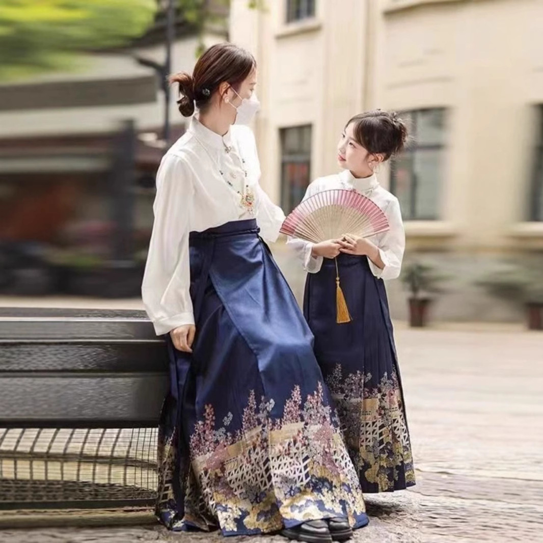 Parent-child style horse face skirt for girls, children’s Hanfu ancient style, super fairy-like, mother and daughter same style, new Chinese style, high-end traditional Chinese style, adult women