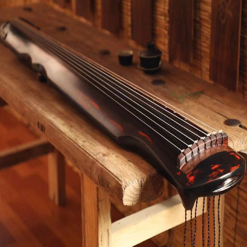 The Guqin has a simple yet elegant structure. It is typically made of high-quality wood, such as old tung wood, which not only gives it a unique resonance but also contributes to its aesthetic appeal. The body of the Guqin is long and slender, with seven strings stretched over it. These strings were traditionally made of silk, but modern Guqins often use steel-core nylon strings for better durability and sound quality.